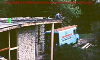 cantelevered(sp?) over the stone wall, and secured onto roof rafters which in